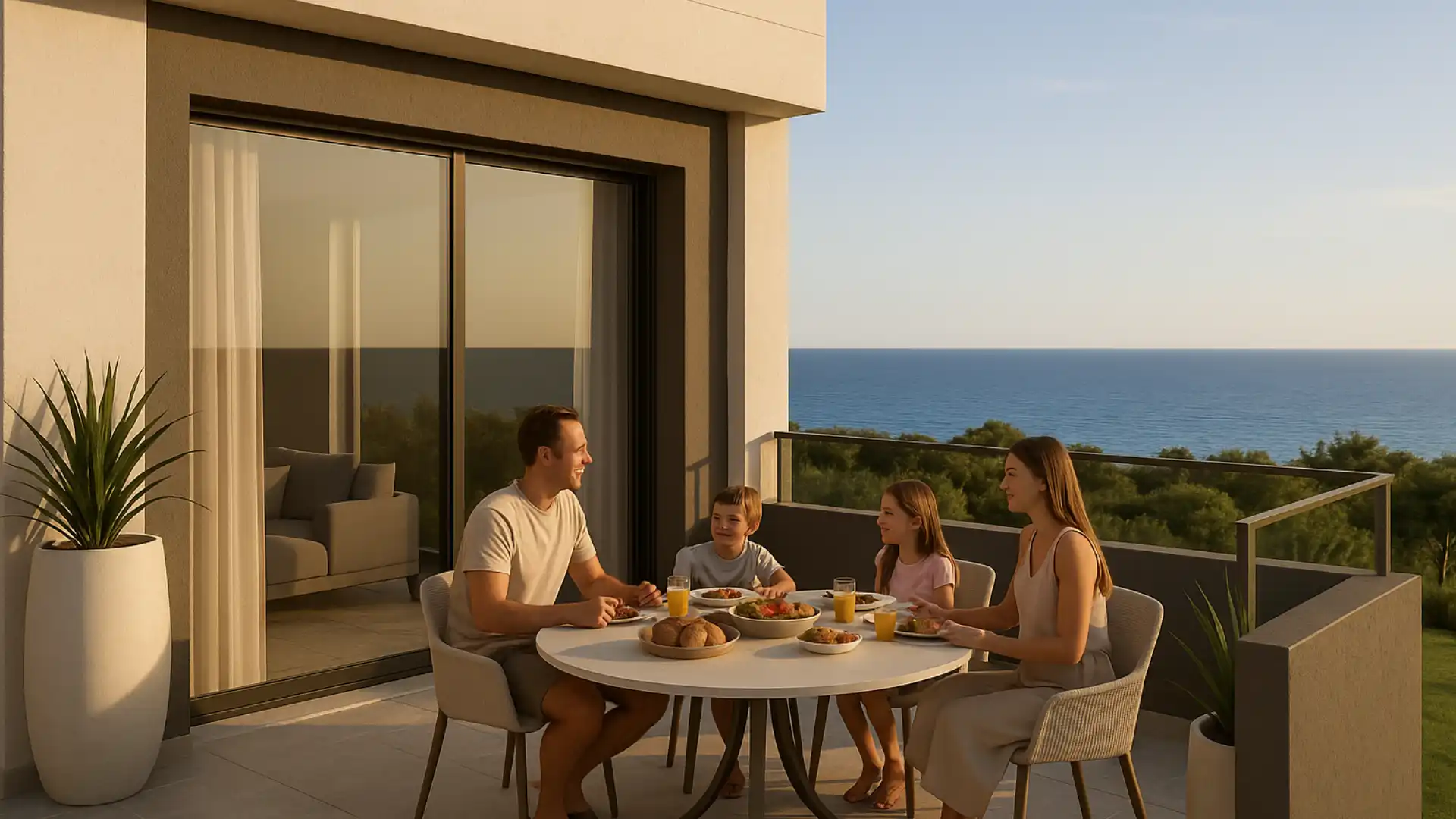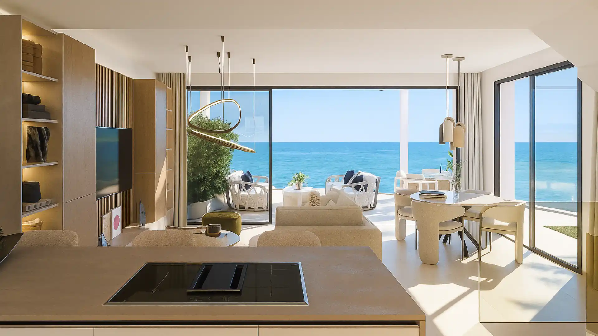 Tarasy stanowią naturalne przedłużenie przestrzeni mieszkalnej – idealne na posiłki, relaks i chwile ciszy z widokiem na morze.